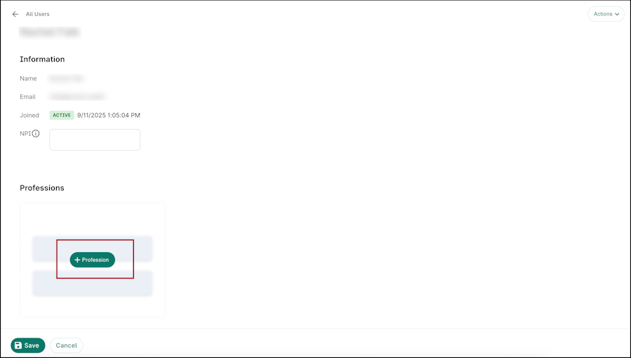 Select the user’s profession(s) from the list.