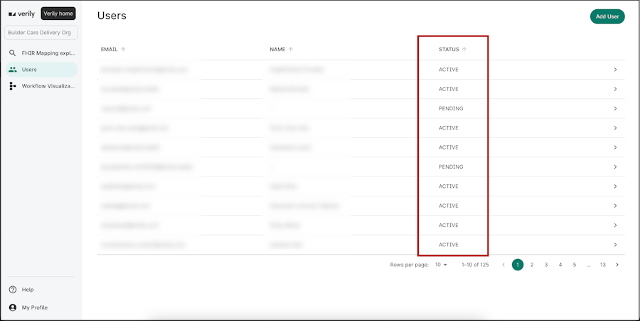 When a user’s account is created, the user receives an invitation to create an account via email. From the Users list, you can track user statuses, resend pending invitations, or remove a user’s access, if needed.