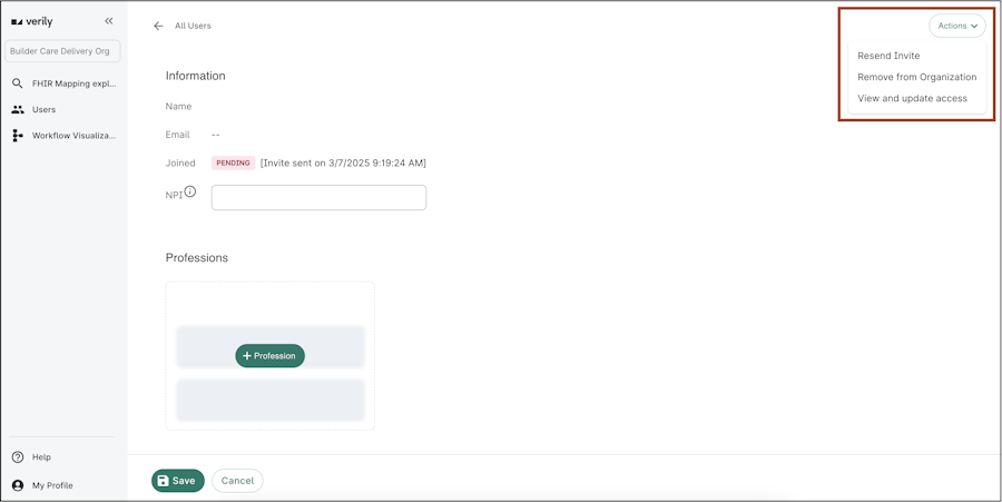Select Resend Invite, to resend a notification to the user.